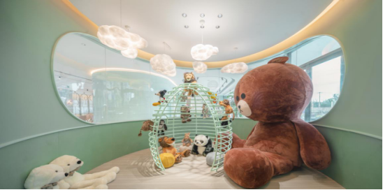 示范区结合金科集美系童享亲子100个细节设计特性,梦幻泡泡机、海洋球、星空灯、独角兽元素设施、童趣金小宝等设计,布局在亲子示范区的各个角落,惊艳了众人,也营造了一个尽情释放童真的场地。