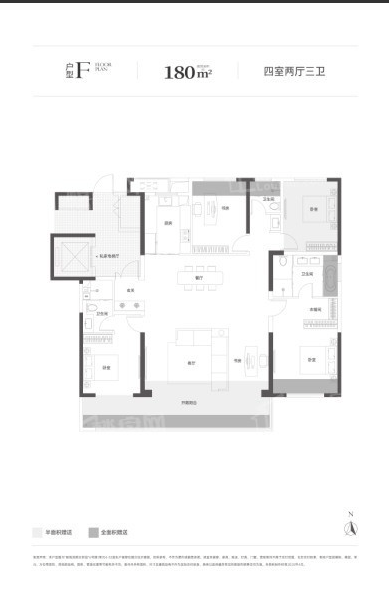 150㎡豪华四居是三代同堂家庭的理想选择,户型空间宽敞,布局合理,能够满足多人口家庭的居住需求。该户型采用 “四开间朝南” 设计,客厅、主卧、两个次卧均朝南,采光面高达 15 米,室内阳光充足,温暖舒适。客厅面宽达 5.2 米,与餐厅、南向阳台形成开阔的公共活动空间,适合家庭聚会与亲友宴请;主卧套房设计,配备独立卫生间、衣帽间与观景飘窗,空间宽敞,舒适度高;两个次卧空间宽敞,可作为儿童房或老人房,满足不同家庭成员的居住需求;北侧书房可灵活改造为茶室、健身房或儿童游乐区,满足家庭多样化的生活需求。厨房采用中西厨分离设计,中厨满足日常烹饪需求,西厨则可用于制作甜点、饮品,提升生活品质;卫生间配备高端卫浴设施,主卫采用智能马桶、淋浴屏等,次卫采用干湿分离设计,方便使用。