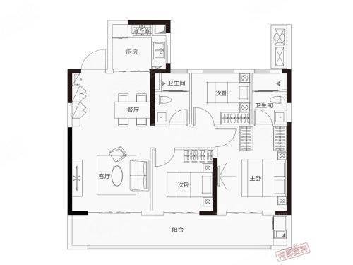 项目主力建面127㎡、142㎡。142㎡户型为三房两厅两卫设计,户型格局方正,屋内空间功能百变、布局井然有序,能提升居住者生活的舒适感。