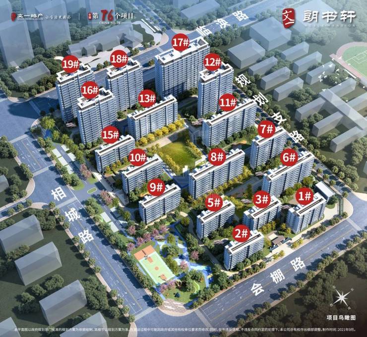 文一朗书轩项目总计新建10栋小高层和7栋洋房,绿化率40%,最大约80余米楼间距,新中式建筑外立面,同时社区配备中央钜幕、儿童乐园、老年康体区、休闲绿地、绿荫健身5大主题空间。
