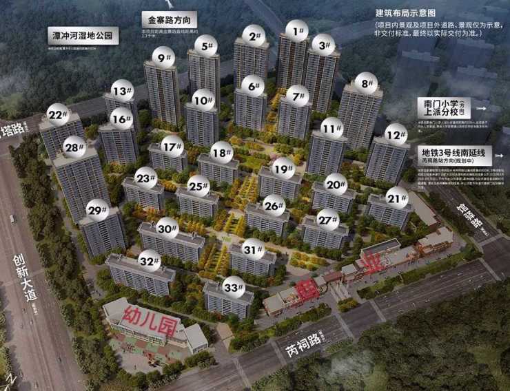 约700亩谭冲河湿地公园,丽景湖公园,古埂公园三园环绕,城市氧吧,生态绿肺,享受绿色生活。