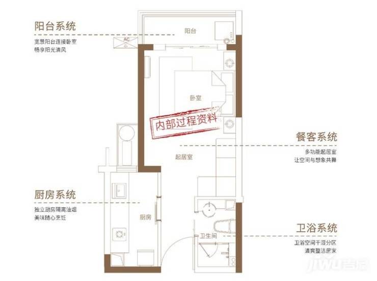 虽然是小户型,但生活品质并不会受到影响,独立厨房独立卫生间,还有宽景阳台,连接卧室,卫浴还做了干湿分离,起居室与餐厅分离,生活舒适方便。