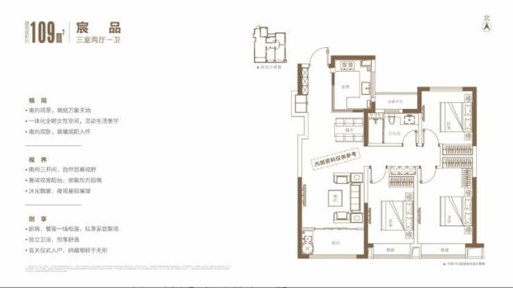 建筑面积约 105㎡的三室两厅两卫户型,是刚改客群的生态宜居优选,在保证空间实用性的同时,进一步提升了居住舒适度和景观视野,适合三口之家或三代同堂的家庭居住。