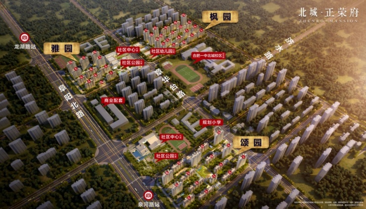 教育配套:三个园区的中间,是北城少有一所全日制寄宿制学校——合肥一中北城校区,共设有48班,预计2021年9月开始招生。全龄段教育就在家门口。