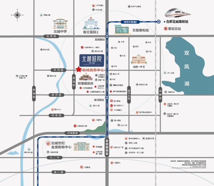 3、交通方面,项目距离北城高铁、地铁8号线、环城高速、阜阳北路高架等都比较近,日常出行便利;