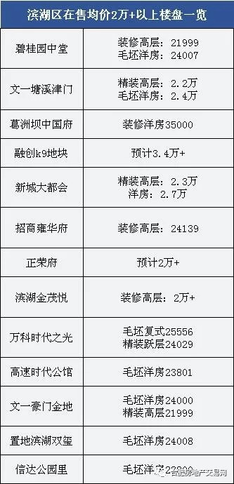 纵观滨湖,除了神盘、限价盘,还剩下高价盘....目前基本均是2万+/㎡起步,其中精装高层较高2.2万元/㎡,洋房2.4元/㎡。