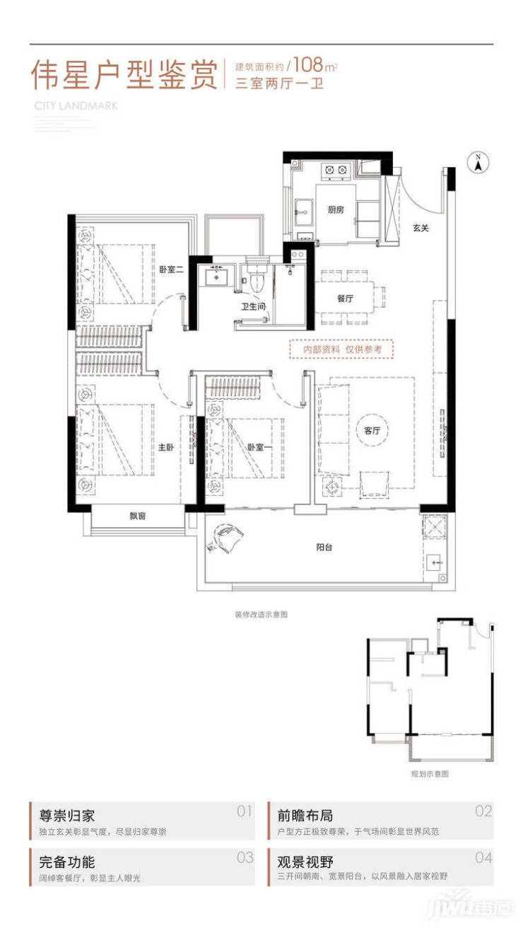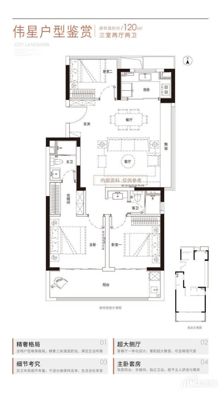伟星玖樾台共规划8栋住宅,以高层和小高层为主,共计701套房源。项目户型面积段约108-120㎡,三室、四室户型,精装修交付。项目处于庐阳区一核三轴的核心位置,周边区域已经形成了主干道+高架+轨道的立体交通网络,可以快速畅达全城。项目附近还有地铁五号线、三号线、八号线三条线路环绕,出行非常便利。项目打造十大竞品质亮点,3.1米层高、公建化立面、绿色建材等,都是超越常规标准的设定。