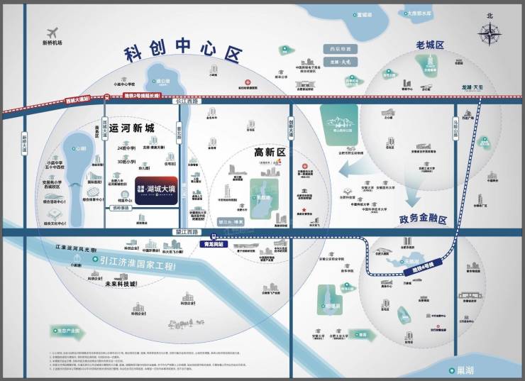 教育之心:合肥八中运河新城校区,安居苑西城校区,五十中,规划建设46所学校;