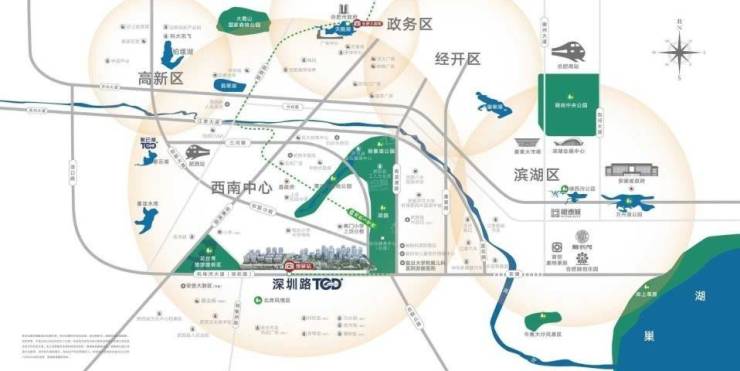 其中,深圳路TOD年华璟城,是位于肥西滨湖西的TOD项目,具体位于肥西县三河路与杭埠河大道交口西北角,项目占地面积约285亩,与地铁3号线南延线馆驿站一体建设,打造聚合产业办公、缤纷商业、活力住宅、服务中心等多元业态的立体都会,住宅方面,住宅组团一期共规划14栋住宅,主推建面约98-108㎡瞰景高层、建面约116-125㎡10F低密度洋房,户型产品丰富,主要面向城市刚需客群。