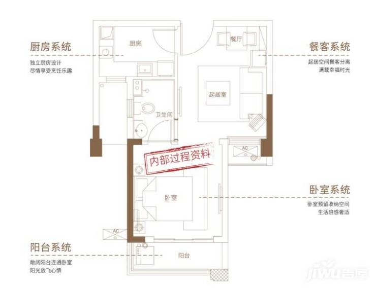 虽然是小户型,但生活品质并不会受到影响,独立厨房独立卫生间,还有宽景阳台,连接卧室,卫浴还做了干湿分离,起居室与餐厅分离,生活舒适方便。