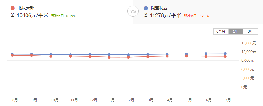 2020年8月挂牌价8521元/㎡,在平稳上升行至今年1月时到达到达9809元/㎡高峰时,2月挂牌价下降了18%,降低到8309元/㎡,之后经历半年的缓慢爬升,到达现在的9271元/㎡。不得不说,玩的就是一个心跳。
