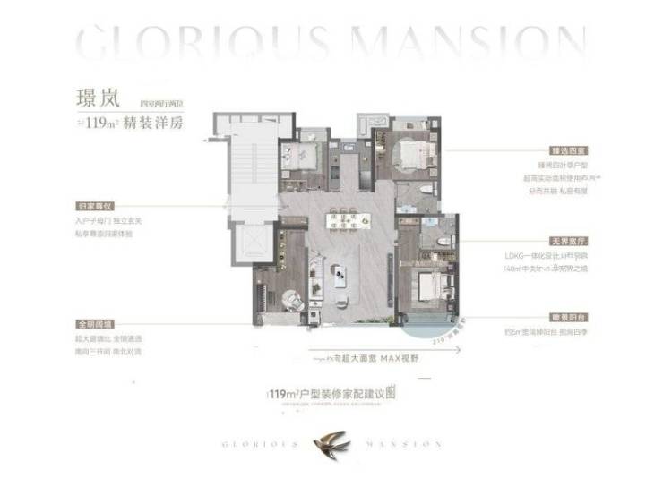 龙湖亚伦璟云上府项目还推出了143㎡的四室两厅两卫户型。该户型采用LDKG一体化设计,餐客阳台无界融合,打造流畅的居家动线,为居住者提供更多的共享空间。约11.3米南向超大面宽,双卧朝南,采光通风俱佳。主卧套房设计中配备南向飘窗、独卫、双衣帽柜,为居住者打造了更为便捷、私密的居住环境。
