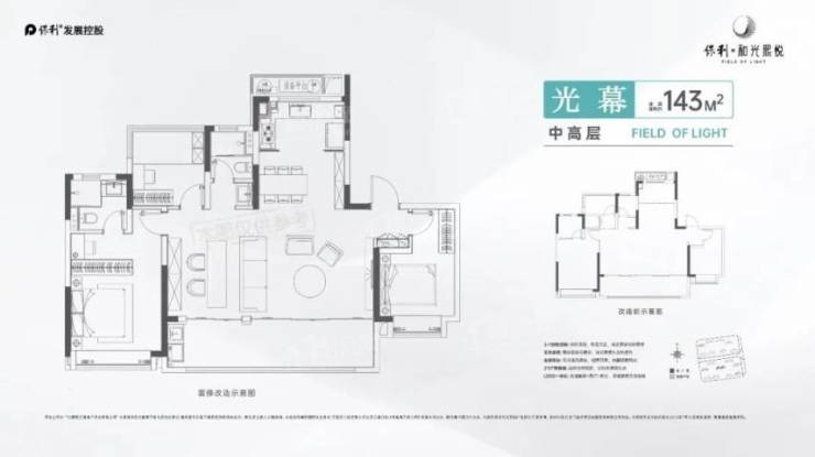 从整体视角来看,即将加推的保利和光熙悦143平方米大户型足够大气,南向开间达到14.5米,超大面宽,采光通风更好,不会形成暗厅。