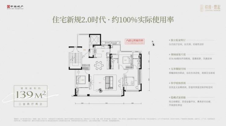 建面约139㎡户型堪称空间魔术的典范,基于对现代居住的深度思考,从尊享光厅入户、南向三面宽阳台、LDKB一体化设计、独立晾晒空间以及北侧全赠送设备平台等场景,与生活需求深度共鸣,赋予居者更多生活想象。该户型可体验相当于旧规户型约150㎡的功能体验,实现空间价值最大化。