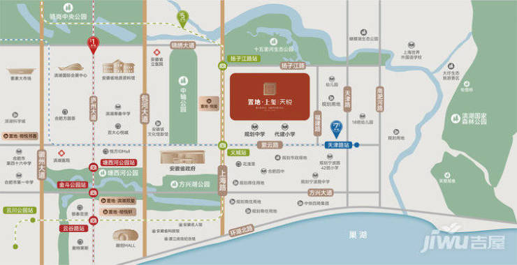 置地上玺天悦项目具体位于上海路与扬子江路交口东南侧,属于省府中轴区域,可以说是核芯之地的核芯,位置优越稀缺,项目紧邻地铁五号线扬子江路站,距离在建地铁七号线直线约1.3km,坐享城市便捷交通,轻松畅达全城。悦方ID MALL、滨湖银泰、方圆荟、奥特莱斯等多个醇熟商圈环绕在侧,城市繁华盛景,触手可及。毗邻十五里河生态长廊(在建中),骆岗中央公园(在建中),以及省府周边的多个公园湿地,绿意环绕,坐拥城市稀缺自然资源,在繁华的都市中还能拥有一方生态宁静居所,实属难得。