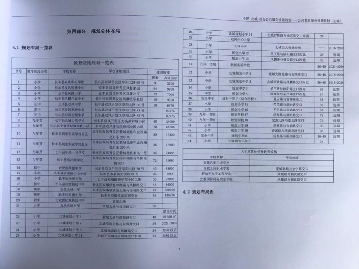 从合肥北城综合公共服务设施规划——公共教育服务设施规划中,我们发现,北城教育资源方面未来要添36所幼儿园、21所小学、11所初中以及3所高中、4所职业学校。