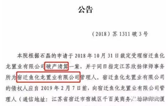 时间到了2019年,根据合肥市12345政府直通车较新消息:该处于2019年4月24日被合肥市中级人民法院宣布受理破产清算申请。