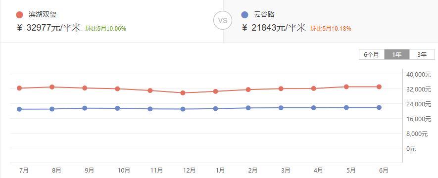 虽然是90年代的老小区,但由于学区是六安路小学和45中本部,导致该小区的学区房价格上涨至3万元/㎡以上,比周边二手房房价高出近1万元/㎡。