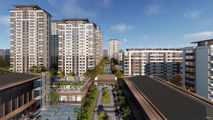 建筑上,翰林天筑采用了米黄色与深褐色相间的外立面,内敛儒雅之中透出现代人的审美细节,营造出大道至简的生活意境。