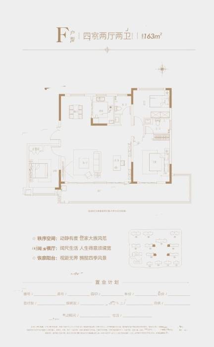 和睦湖壹号的主力户型包括了4室2厅2卫的147㎡、145㎡、142㎡户型,以及3室2厅2卫的116㎡户型和4室2厅2卫的163㎡户型。这些户型覆盖了面积较小但也是改善型的118㎡户型,拥有主卧套房和超大横厅的设计;客厅范围很大,动静区分明确的144㎡户型;以及主卧面积很大,可设衣帽间的173㎡户型。无论是家庭需要更多私密空间,还是希望享受更大客厅的舒适感,和睦湖壹号都能满足不同居住需求。