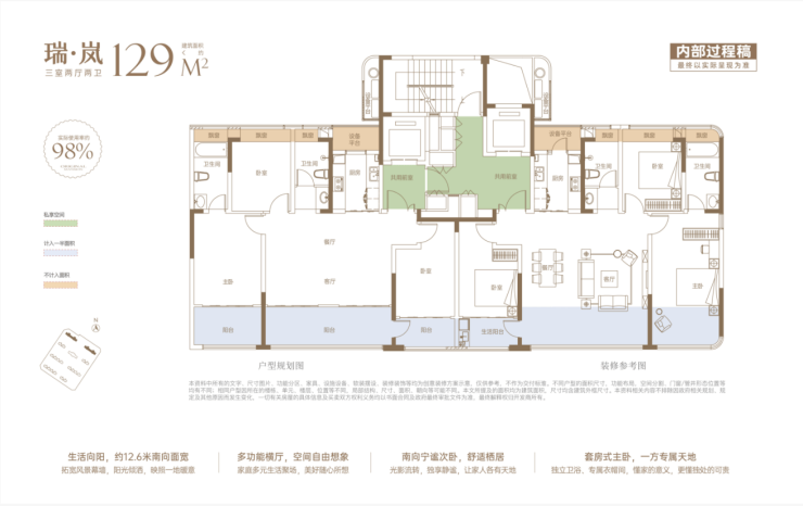 位于合肥瑶海区的鸿瑞府项目,坐落于敬亭山路与站前路的交汇处,总建筑面积达9.57万平方米,项目包含7栋17层和1栋13层的小高层以及1栋25层的大高层住宅,共计471户。作为瑶海主城区首个新计容产品,鸿瑞府的实际使用率高达104%。住宅户型从129平方米到138平方米的小高层到182平方米的宽幕平层,充分满足了不同家庭的需求。