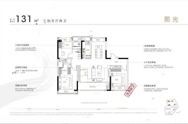弘泰熙湖澜悦提供131㎡、141㎡及160㎡三种户型,均为三室两厅两卫。131㎡户型设有多功能区,双南卧采光好;141㎡户型厨房调整,客厅、主卫增大;160㎡户型中西厨结合,南北通透,采光优越。