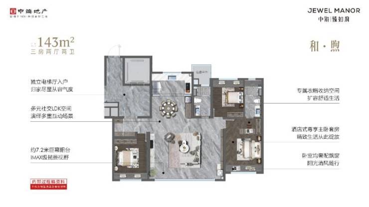 中海臻如府的户型设计非常多样化,满足了不同家庭的需求。其中,143㎡户型拥有独立的电梯厅入户,布局合理的三房两厅两卫,7.2米宽的景阳台打造了宽敞的公区空间。而220㎡户型则更加亮眼,配备了独立的电梯入户,中西厨结合的设计,客餐厅一体化,多功能区域可以根据居民的需求随心改造,为居住者提供了更多的可能性。