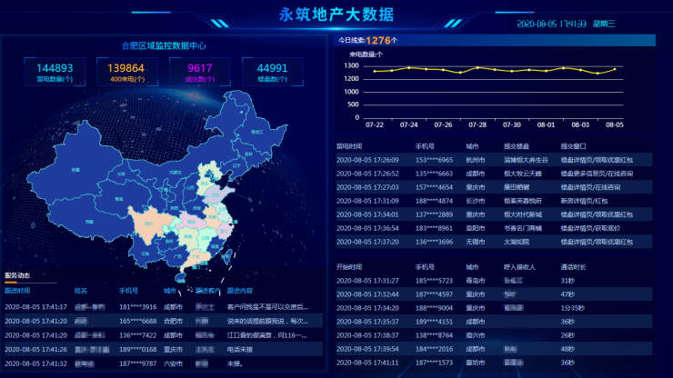 永筑ERP数据展示当日新增与历史总数,数据清晰一目了然,简单易懂。以8月17日杭州永筑为例:当日推广新增74位有效客户,39个400来电,36个留电,服务数407次,成交数5笔;本月账户累计获客1947位,929个400来电,1018个留电,6979次服务,总共完成49笔成交。