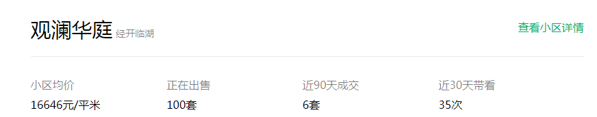 观澜华庭地处于经开区紫云路和清潭路交口,小区目前二手房均价16646元/㎡,小区近90天成交了6套房源。