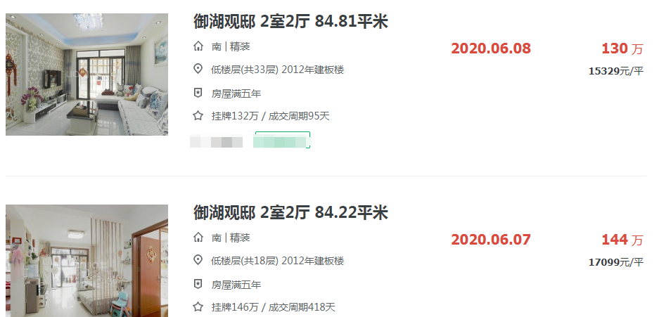 从成交来看,御湖观邸6月成交了2套房源。两套房源面积都差不多是85㎡,总价130万起。
