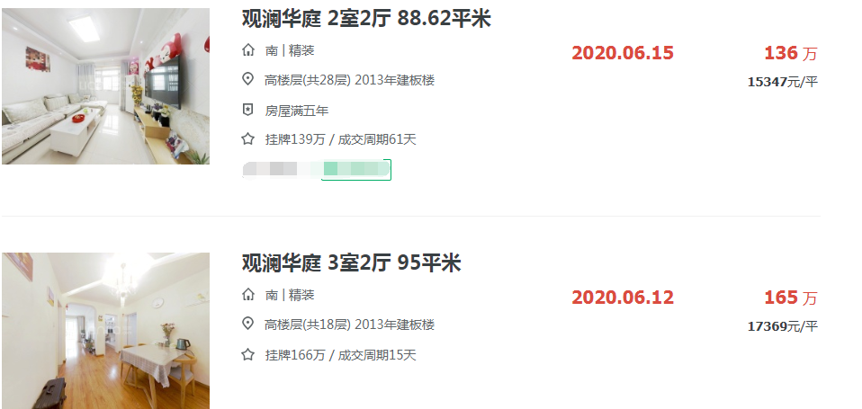 该小区6月成交了2套房源,其中一套房源约89㎡,还有一套房源为95㎡,总价136万起。