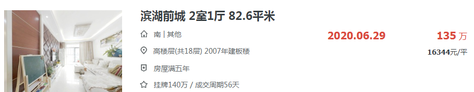 如果手持50万首付,在滨湖前城可以选择3室2厅103㎡户型的二手房,总价在166万以内。
