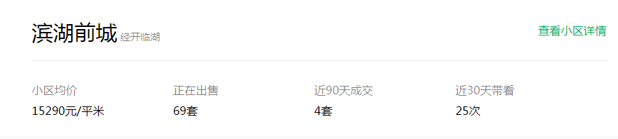 滨湖前城地处于经开区南艳湖附近,小区目前二手房均价15290元/㎡,小区近90天成交了4套房源。