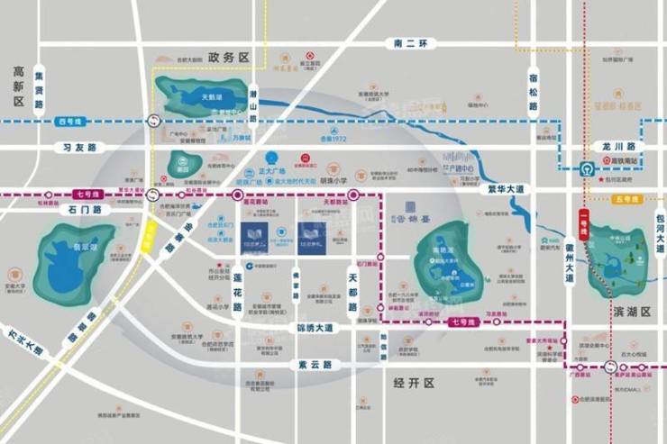 皖投云启锦悦花园周边配套醇熟,交通便捷,通过繁华大道、金寨路高架、莲花路等主干道,可以直接到达政务区、滨湖区等多个区域,自驾出行非常方便。项目周围教育资源同样也非常丰富,不仅代建一所18班的幼儿园,同时旁边直接规划一所九年一贯制的学校。项目距离中环城、尚泽大都会、万象城、天鹅湖万达等商圈都非常近,购物消费非常方便。皖投云启锦悦花园周边有南艳湖公园、翡翠湖公园、天鹅湖等自然绿地,生态环境也很不错。